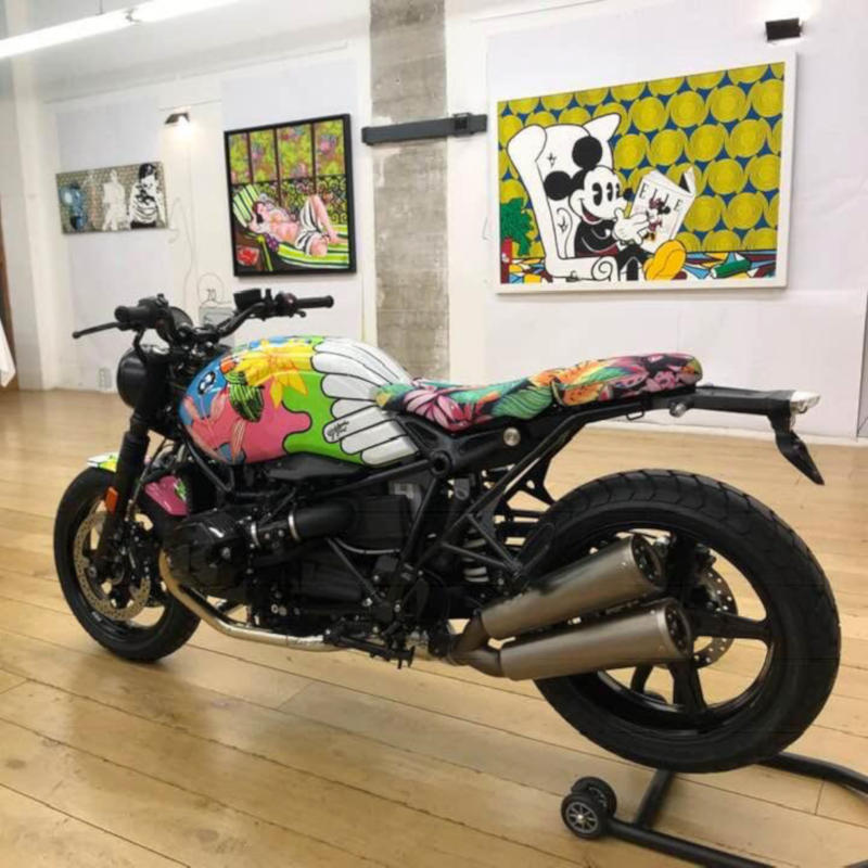 Des Art Cars sur base de voitures BMW, c'est presque monnaie courante ! Souvenez vous, la longue liste a commencé en 1975 avec la 3.0 CSL d'Alexander Calder, prolongée en 1979 par la sulfureuse M1 d'Andy Warhol (rien que ça !) jusqu'à la M6 GT3 de 2017 par Cao Fei. Mais coté Art Bike, la liste est courte puisqu'il n'y en a... aucun ! Jusqu'à cette NineT, créée par l'artiste français Christophe Fort :