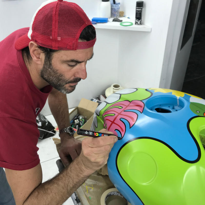 Plus de 8 couleurs ont été appliquées pour aboutir au résultat final, au pistolet, au poska et au pinceau, selon les motifs souhaités.